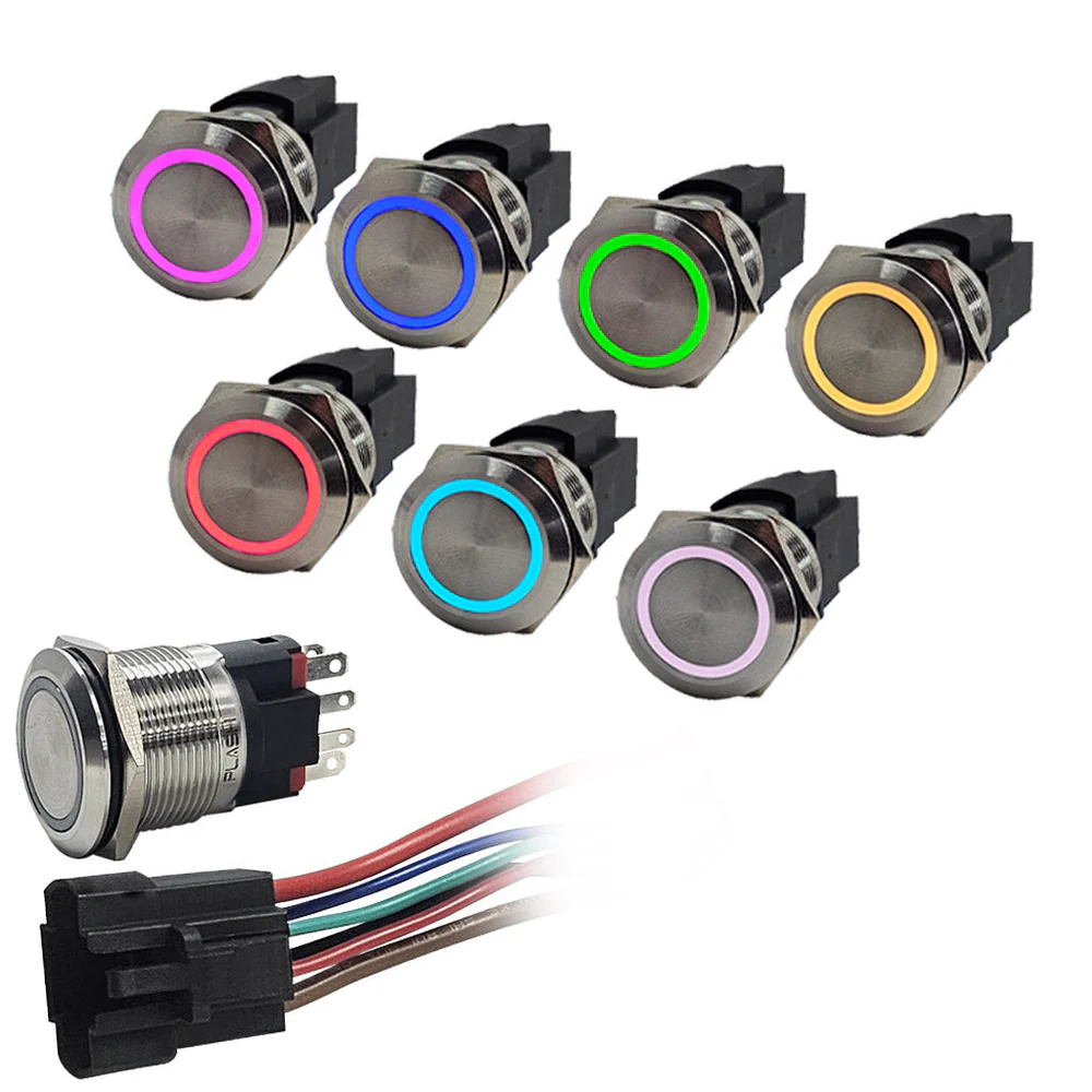 A metal pushbutton is sleek and durable. It can include an LED with its own internal current-limiting resistor, so voltage can be applied directly to the terminals. A button with an internal LED is labeled for its maximum voltage. A voltage applied below the maximum will produce a dimmer light.