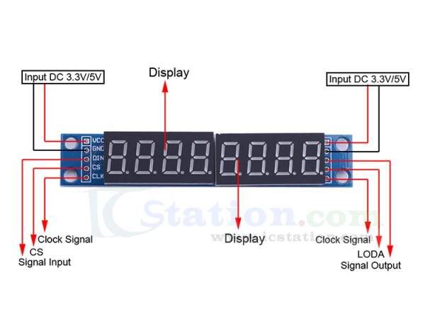 These LED segment devices require only 3 digital IO (DIO) microcontroller pins to operate, and can be chained.