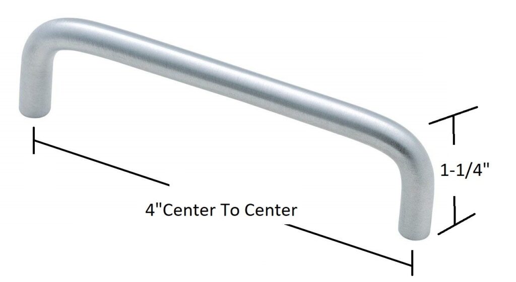 A Guardrail must attach at 4″-centers. Standard “wire drawer pulls” will work, or any style that fits 4″.